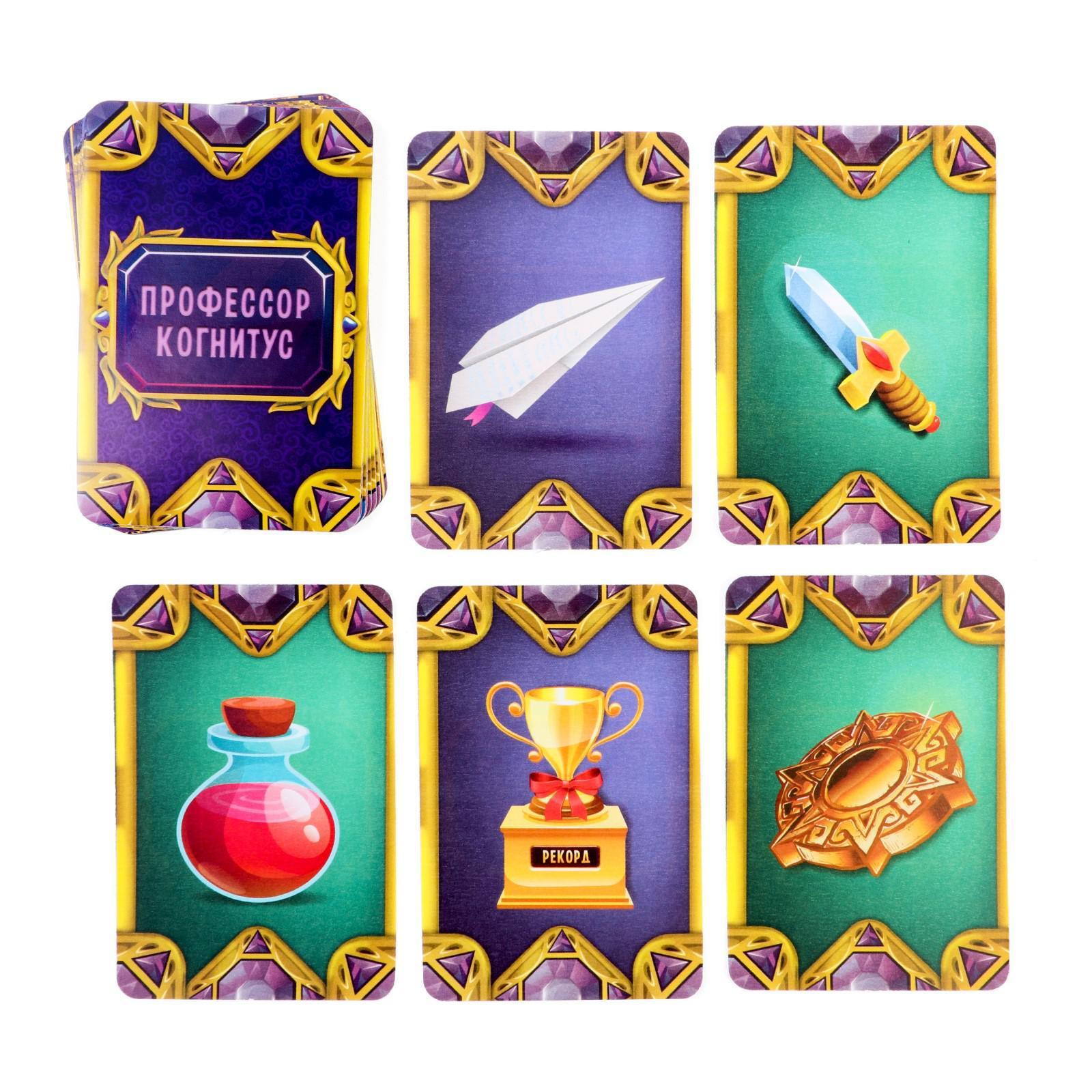 Ваша цель — добраться до Дракона на поле раньше всех. Каждый получит свой набор карт. Запомните их расположение и переверните. Открывайте новые из колоды профессора Когнитуса, ищите среди своих карточки с точно таким же изображением и выкладывайте на них фишки.