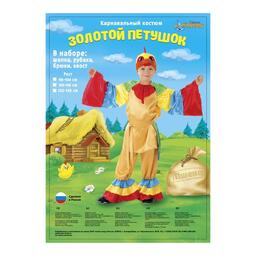 Детский карнавальный костюм "Золотой петушок", рубашка, брюки, хвост, шапка, р-р 32, рост 128 см 1641126