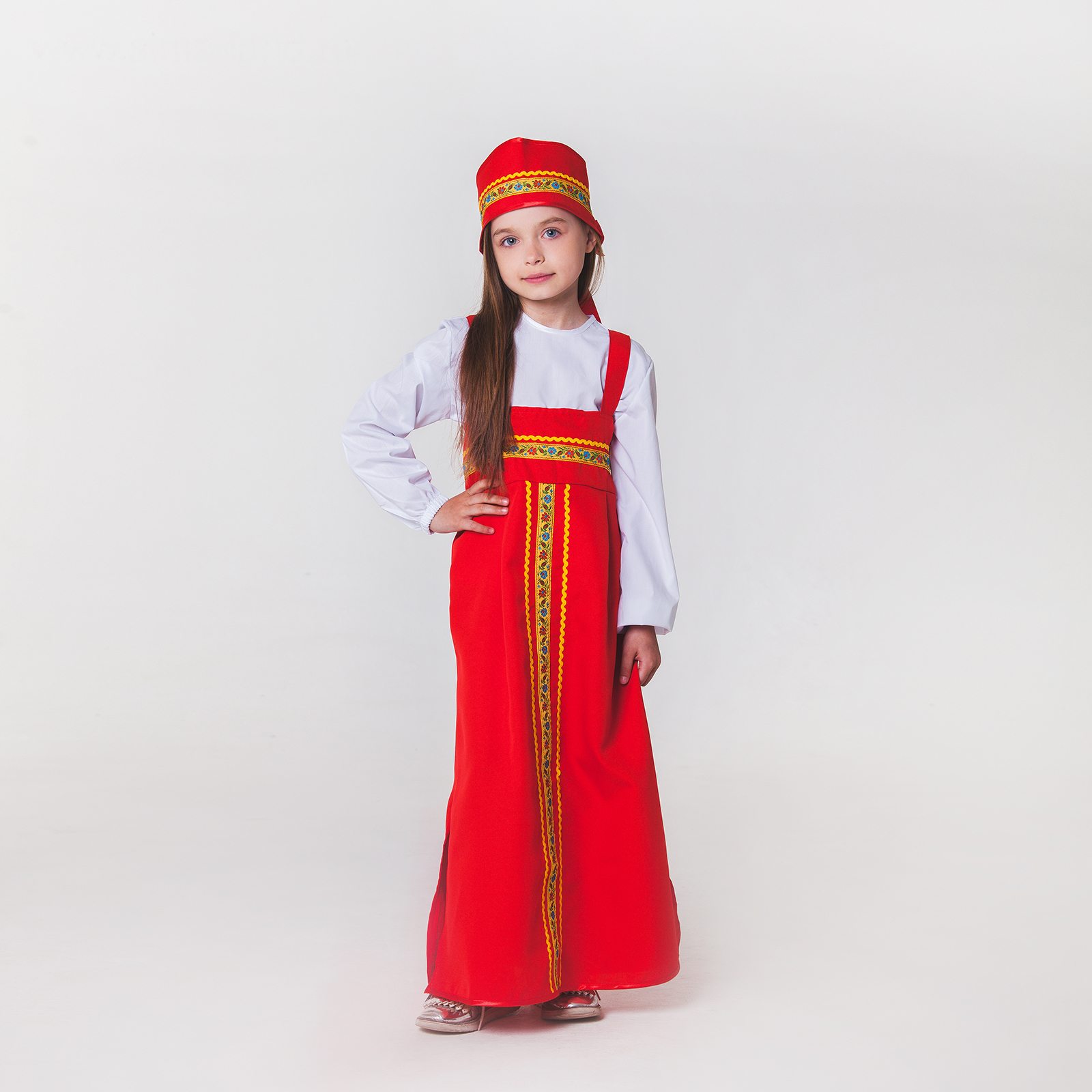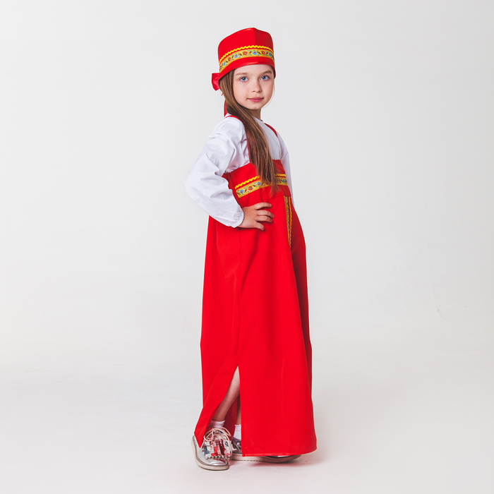 Карнавальный костюм для девочки "Русский народный", сарафан, рубашка, кокошник, 6-7 лет 1741776