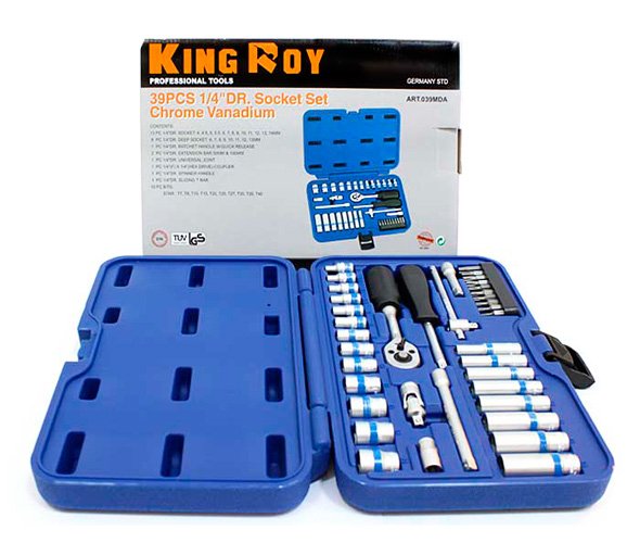 - Наличие в наборе Удлинители 1/4", Трещотка 1/4", Торцевые головки 1/4", Отвертка под биты, Биты