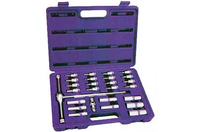 - Наличие в наборе Трещотка 3/8", Торцевые головки 3/8", Биты