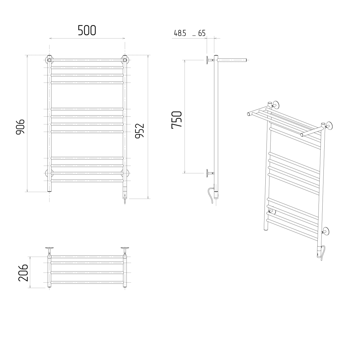 Полотенцесушитель электрический Equation Антарес 500х900 мм хром