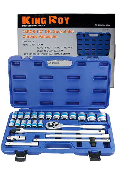 - Наличие в наборе Удлинители 1/2", Трещотка 1/2", Торцевые головки 1/2"