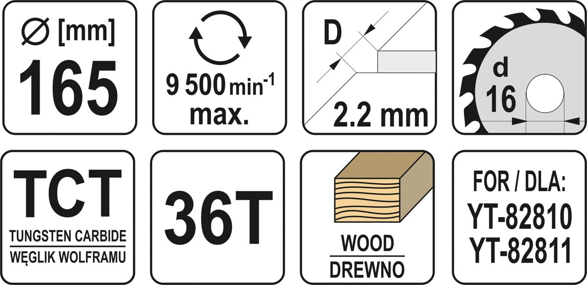 Технические характеристики Yato YT-60591 (165x16x2.2x1.5 мм), 36 зуба