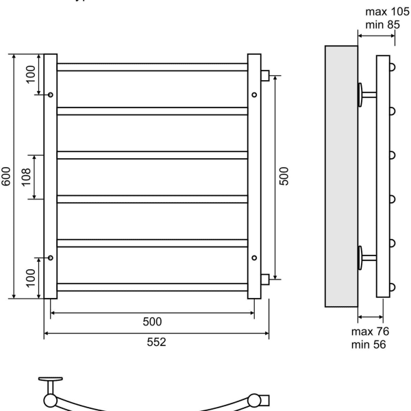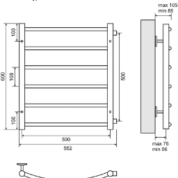 Полотенцесушитель водяной 50х60 см, с боковым подключением 50 см, нержавеющая сталь