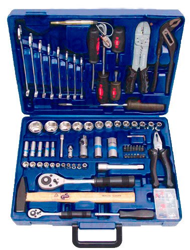- Наличие в наборе Шестигранные ключи, Удлинители 1/4", Удлинители 1/2", Трещотка 1/4", Трещотка 1/2", Торцевые головки 1/4", Торцевые головки 1/2", Пассатижи, Отвертки, Отвертка под биты, Молоток, Комбинированные ключи, Индикаторы, Зажимные клещи, Головки свечные, Биты