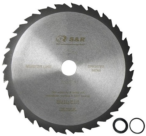 - Комплектация - Пильный диск; - кольца для уменьшения посадки диска до 20 и 25.4 мм; - упаковка
