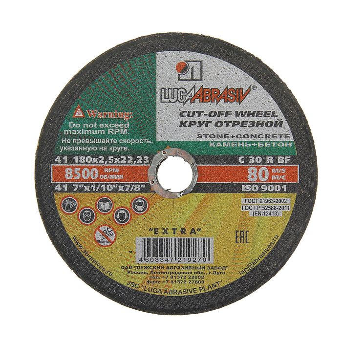 Круг отрезной по камню "Луга", 180 х 2.5 х 22 мм 1128336