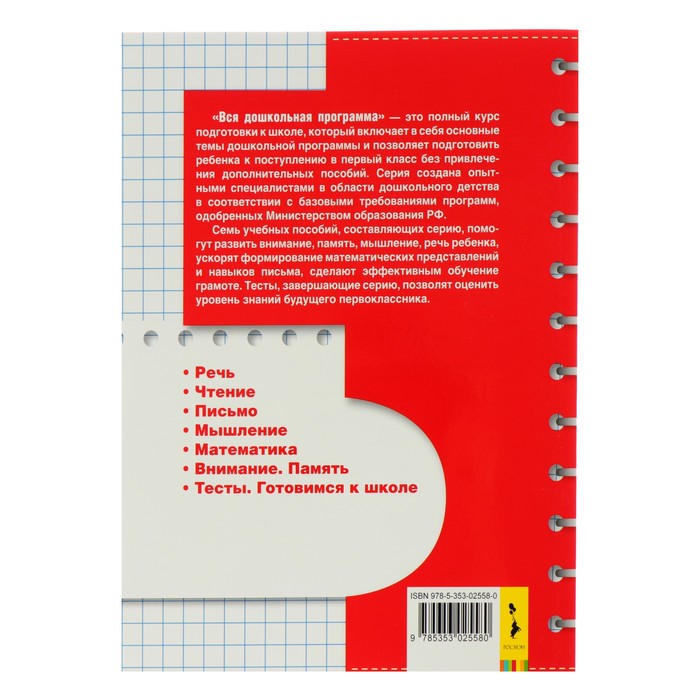 Книги этой серии представляют собой полный и эффективный курс подготовки ребенка к школе. Они разработаны в соответствии с дошкольными программами, одобренными и рекомендованными Министерством образования РФ. Настоящая книга поможет постепенно, пошагово сформировать у ребенка навыки самостоятельного чтения перед поступлением в школу.