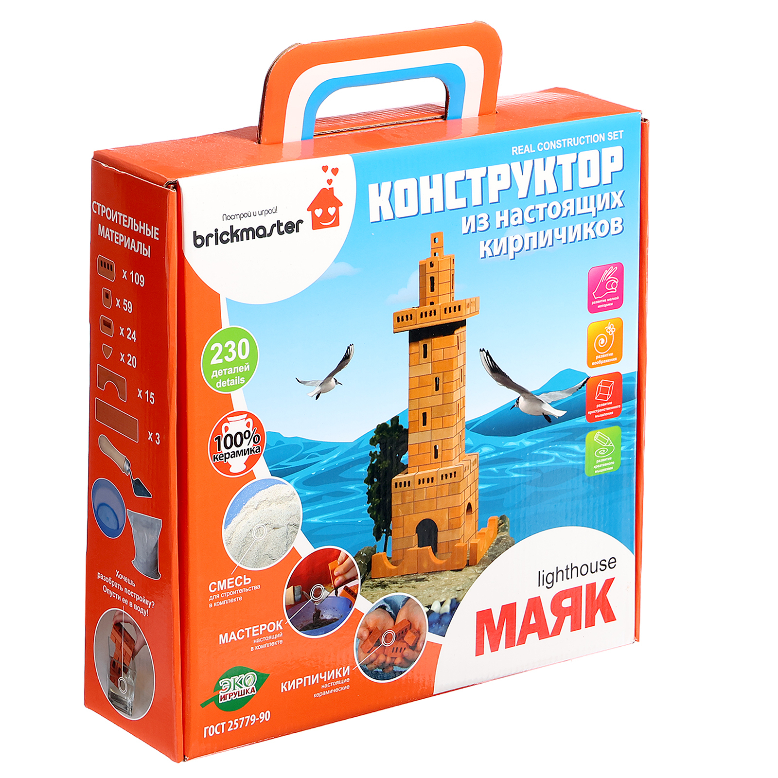 <p>Brickmaster – это уникальный эко-конструктор для детей, состоящий из настоящих кирпичиков! Способствует развитию мелкой моторики, воображения, игровой деятельности, формированию сенсорных эталонов цвета, величины и формы, пространственного ориентирования, комбинаторных способностей.</p><p>Кирпичики, арки и другие архитектурные детали сделаны из натуральной обожженной глины по той же технологии, что и настоящие, только отличаются меньшим размером.</p><p>Соединить между собой детали будущей постройки позволит экологически безопасная <a href="//www.sima-land.ru/1075881/smes-dlya-stroitelstva-950-g/">специальная смесь</a>, которая состоит из речного песка и кукурузного крахмала. Она не только обладает всеми свойствами настоящего цемента, но также позволяет при необходимости несколько раз перестраивать конструктор: достаточно готовую постройку поместить на 2-3 часа в воду, и все кирпичики снова отделятся друг от друга. </p><p>Специальный мастерок, входящий в комплект, поможет удобно нанести цемент на детали. Он точно такой, как у взрослых строителей, только меньшего размера.</p>