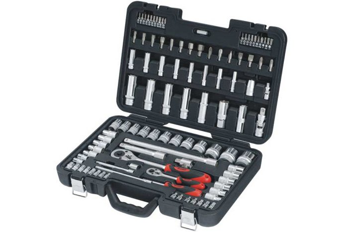 - Наличие в наборе Удлинители 1/4", Удлинители 1/2", Трещотка 1/4", Трещотка 1/2", Торцевые головки 1/4", Торцевые головки 1/2", Отвертка под биты, Головки свечные, Биты