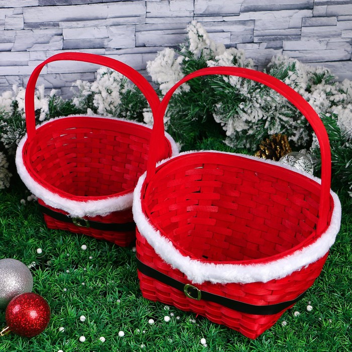 Набор корзин «Красная шубка», 2 шт: 28×22×11/33,5 см, 22×17×9/27 см, шпон 2760361