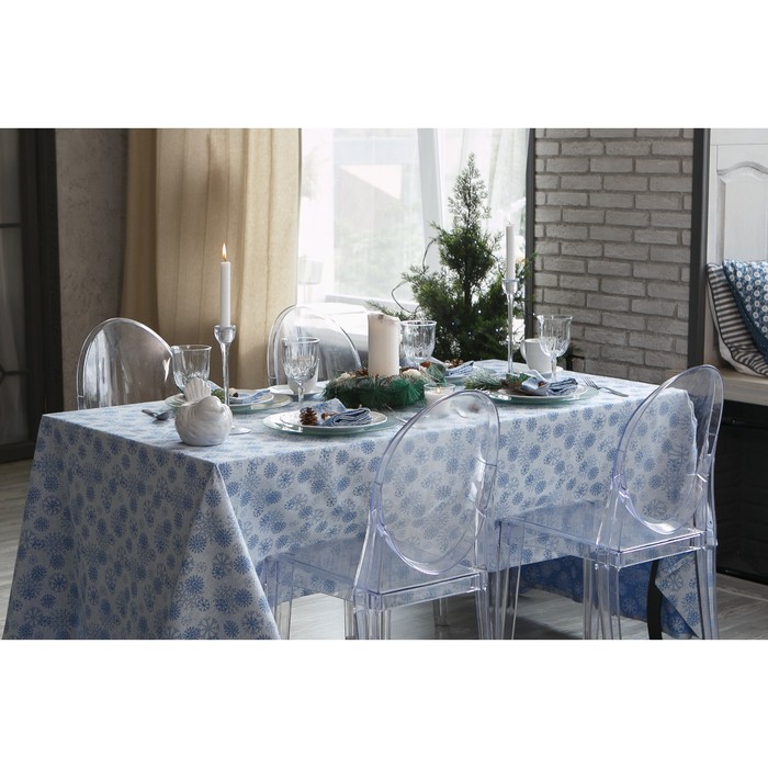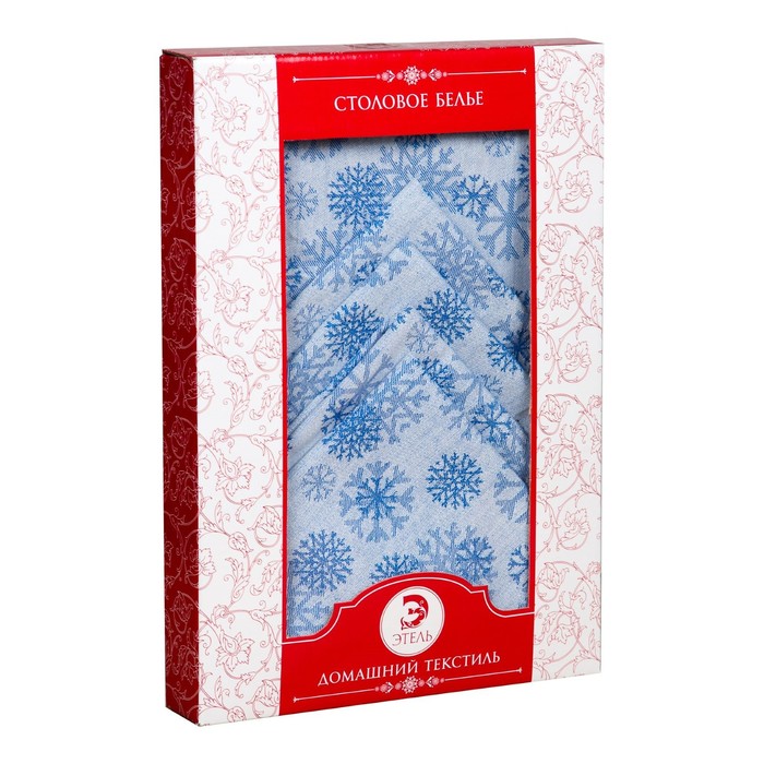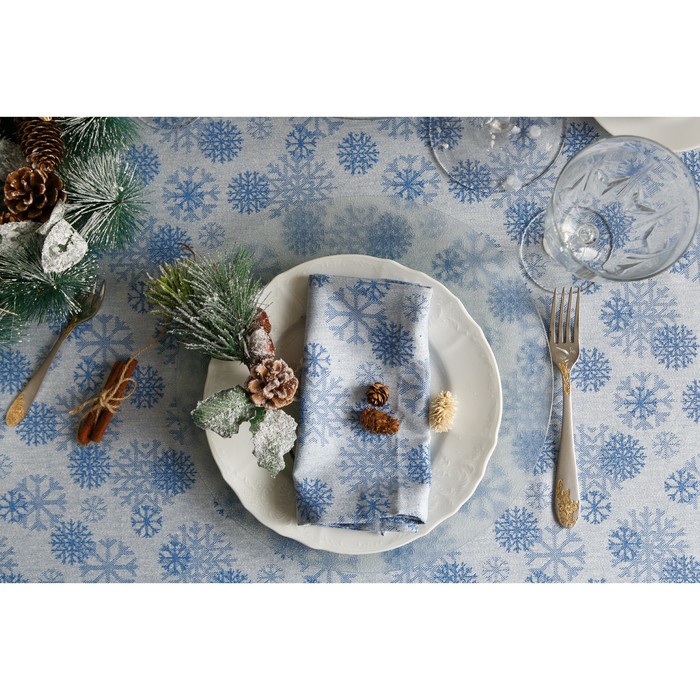 Столовый набор "Этель" Снежинки синие скатерть 150х150 см, салф. 40х40 см - 6 шт, хл.100%, ВМГО 2642543