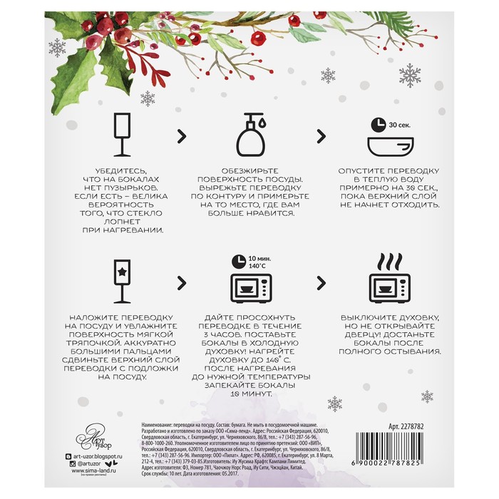Переводки на посуду (холодная деколь) «С Новым Годом», 12 х14 см 2278782