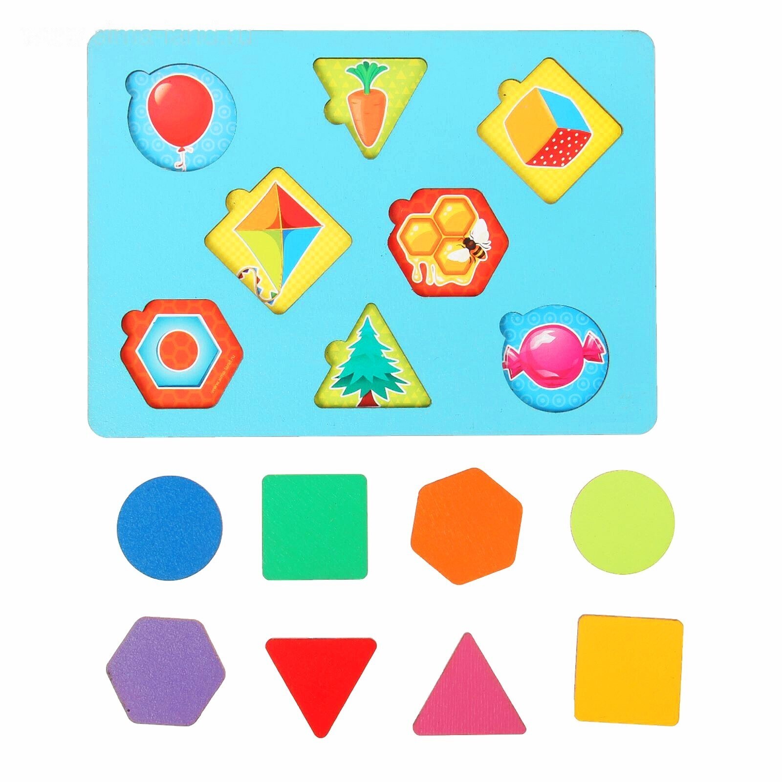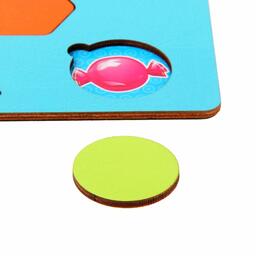 «Секретики» развивают кругозор ребёнка и знакомят его с такими базовыми понятиями как «верх» и «низ». За деревянным вкладышем прячется яркая картинка с определённым изображенем — расскажите малышу больше о том, что на рисунке и предложите крохе несколько заданий на запоминание или соотнесение элементов.