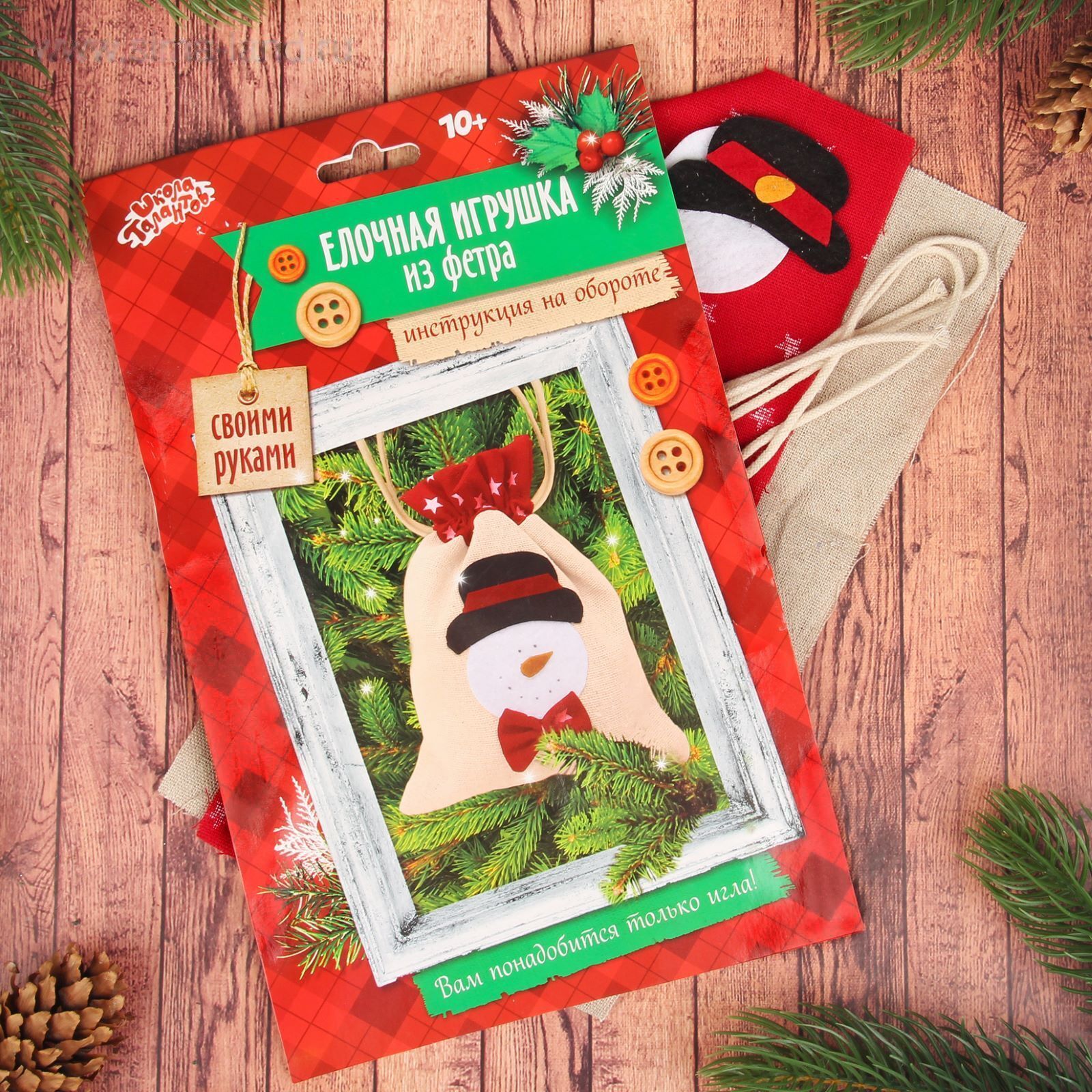 Новогодняя ёлочная игрушка, Набор для создания мешочка для подарков из фетра "Снеговичок" 2172719