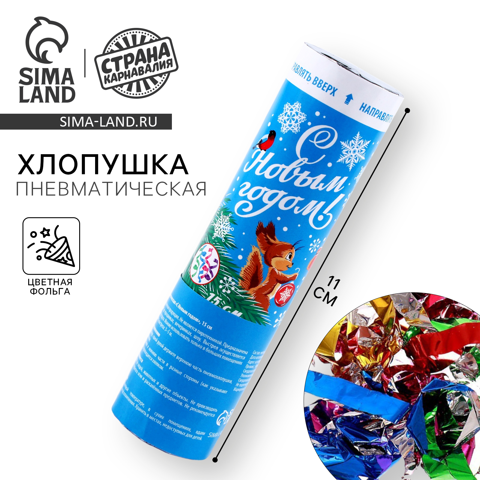 Хлопушка пневматическая поворотная «С Новым годом» (конфетти+ фольга) 15см 2237075