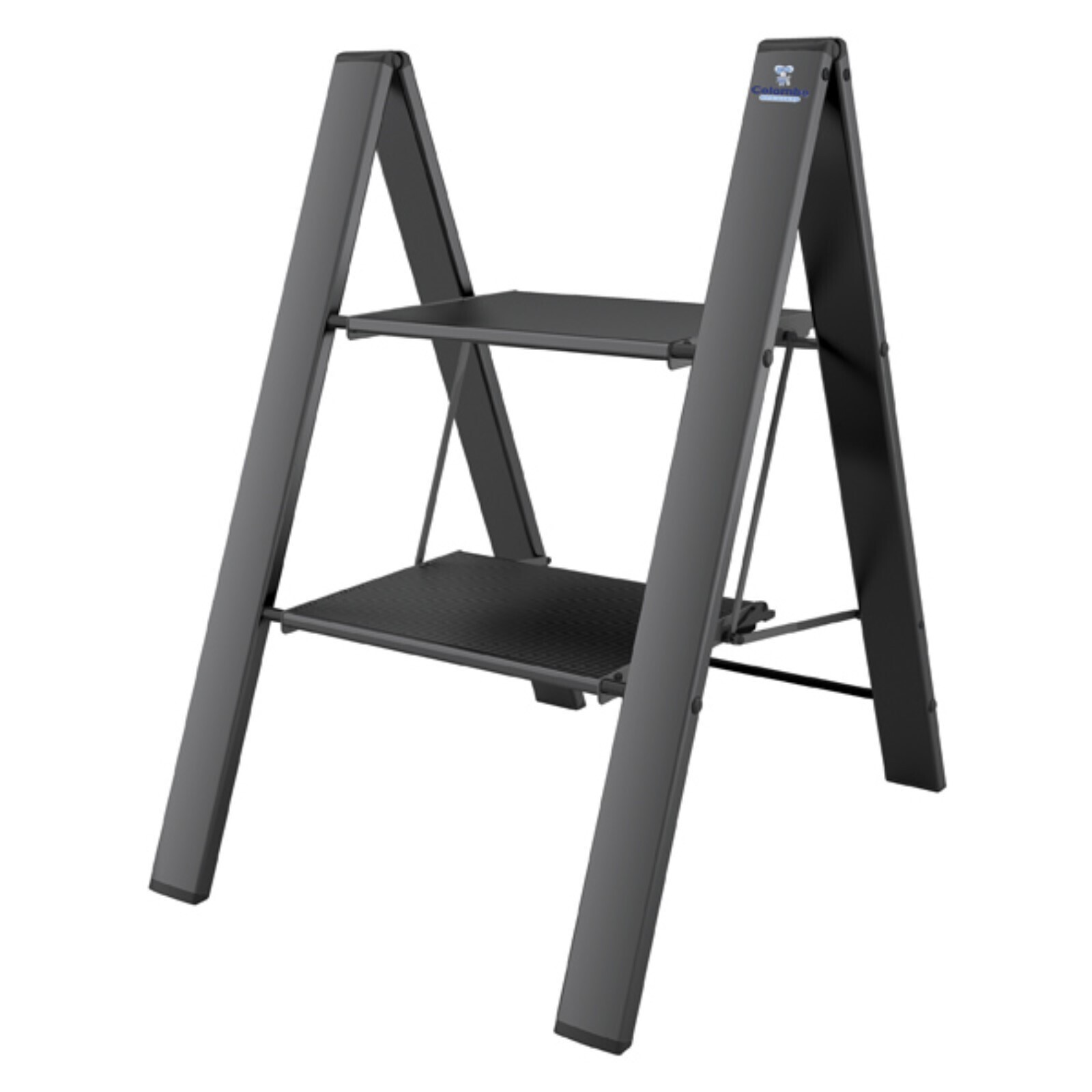 Стремянка пригодится в быту, а также при монтажных и ремонтных работах в доме или на даче. В сложенном виде она легко поместится в кладовке или на балконе.