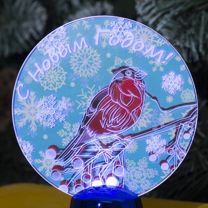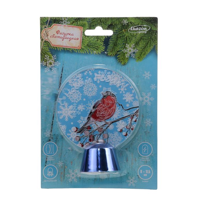 Подставка с динамикой "Снегирь", 11.5 см, (батарейки в компл.), 2 LED, БЕЛЫЙ 2327202