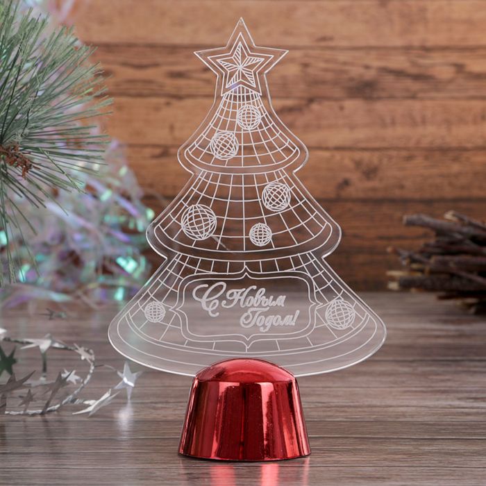 Подставка световая "Елочка с шариками", 14х9.5 см, (батарейки в компл.), 1 LED, RGB 2446493