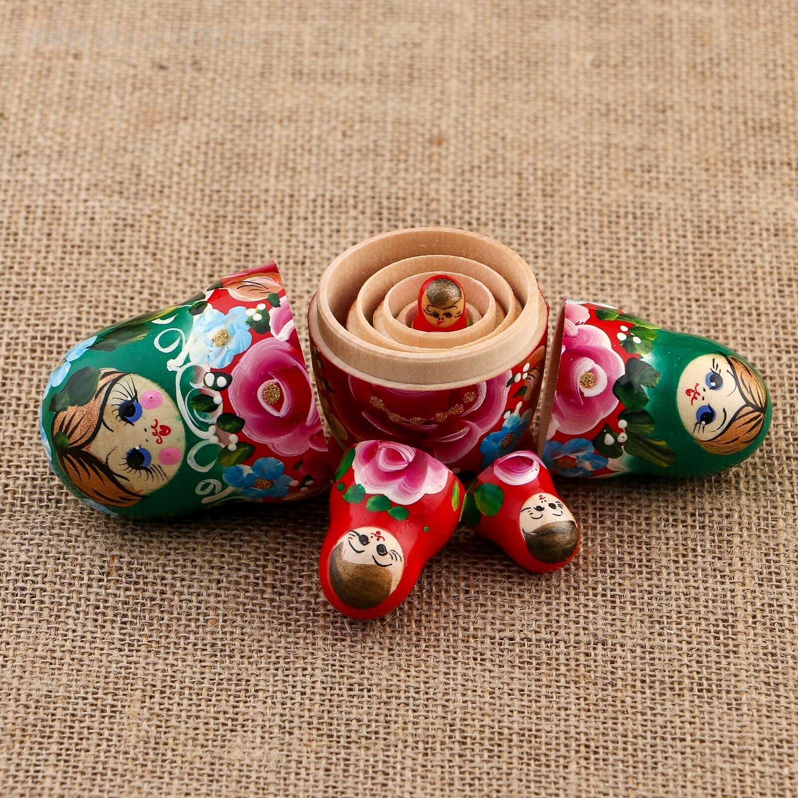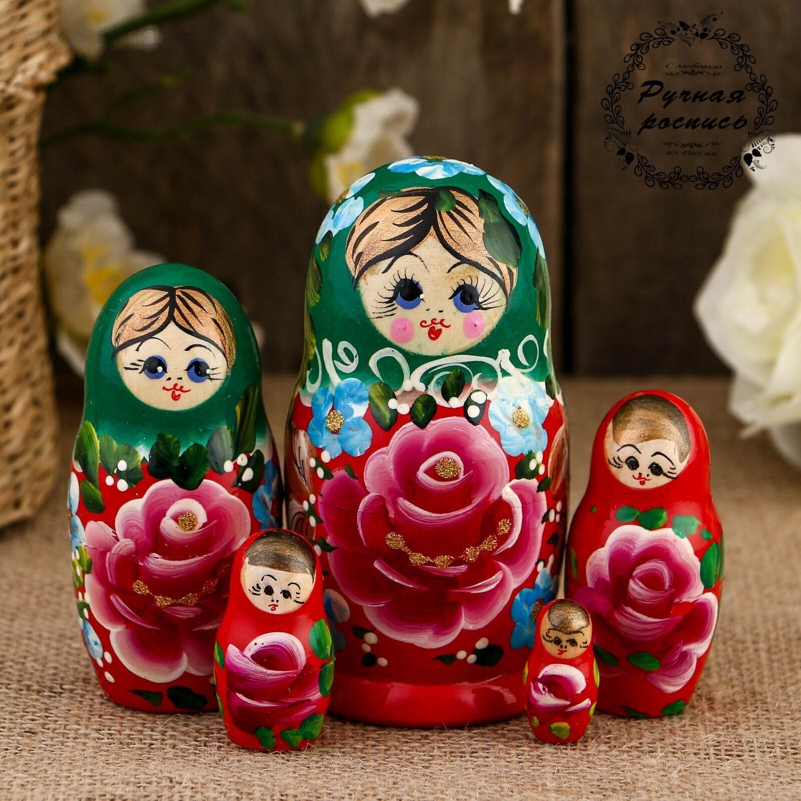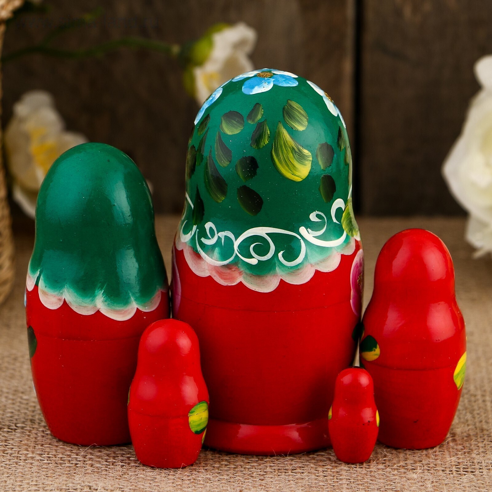 Матрёшка «Розы», зелёный платок, 5 кукольная, 10,5 см 2773645