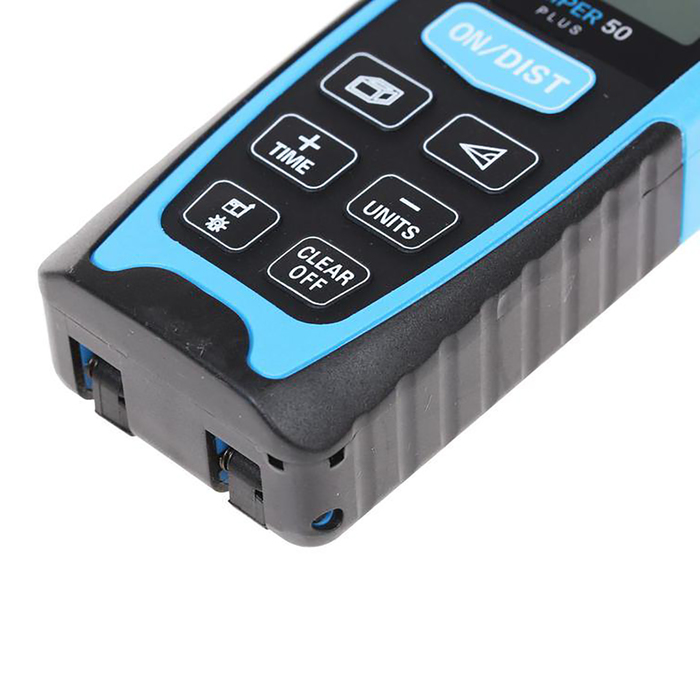 Дальномер с высокой точностью измеряет расстояние до объекта. Прибор оснащён откидной скобой для удобства работы в углах и щелях. Встроенный таймер позволяет избежать вибраций и изменения положения корпуса дальномера при нажатии на кнопки. Данная функция существенно снижает погрешности измерения.