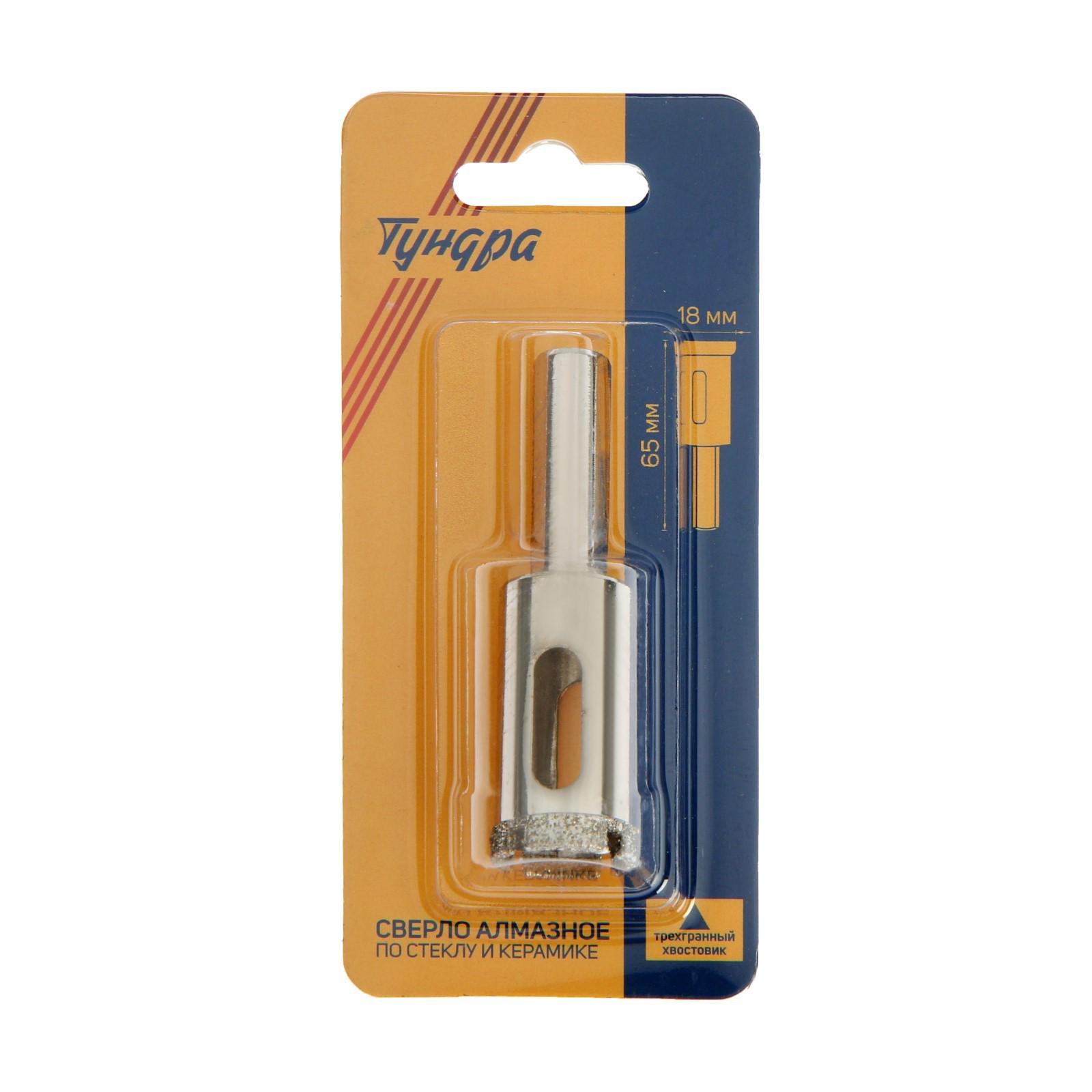 Сверло алмазное по стеклу и керамике TUNDRA, трехгранный хвостовик, 18 х 65 мм 1935835