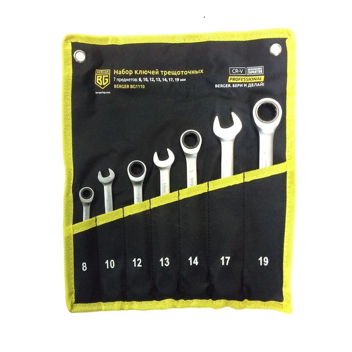 - Вид ключа Комбинированный, Набор, Трещоточный