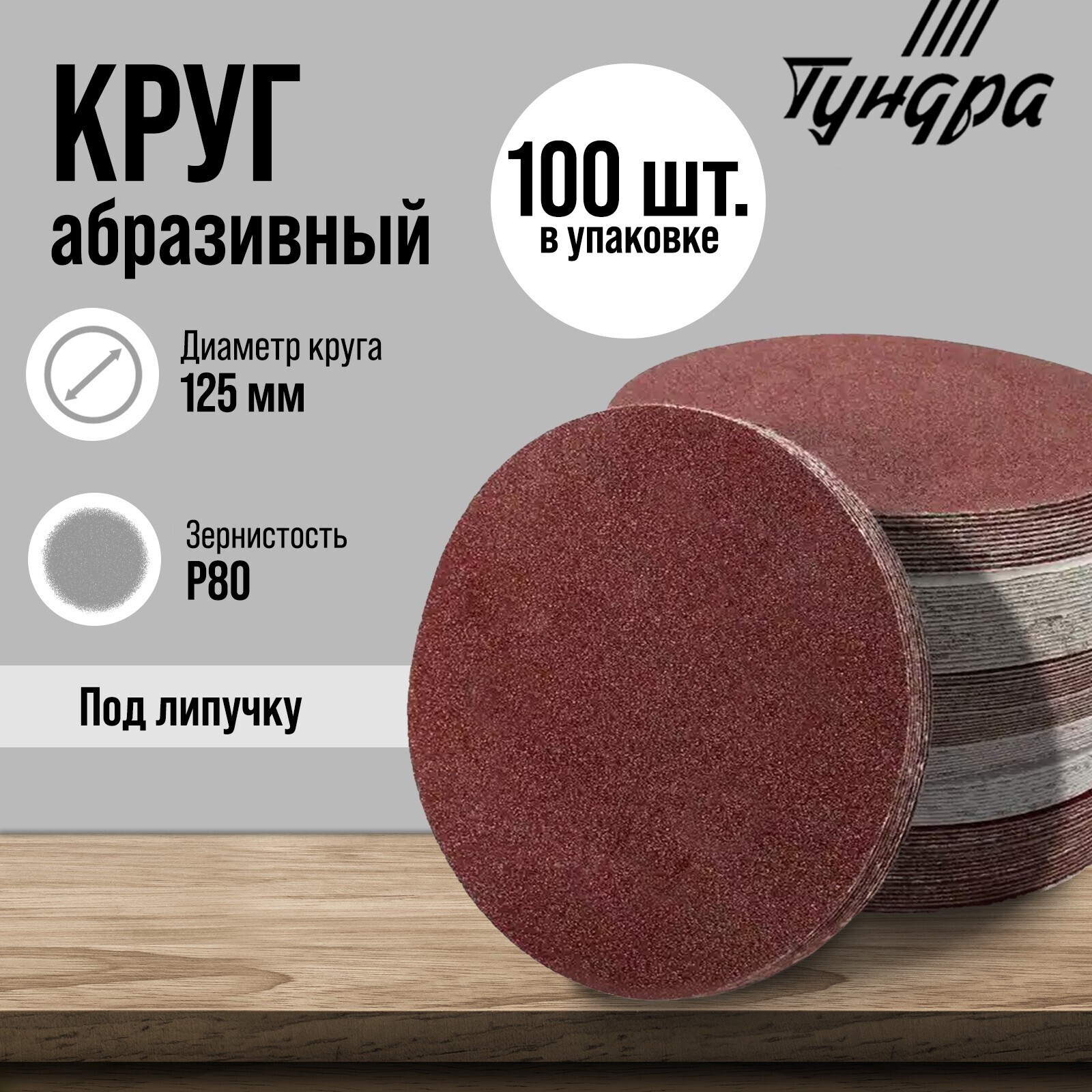 Круг абразивный шлифовальный под "липучку" TUNDRA, 125 мм, Р80, 100 шт. 1928250