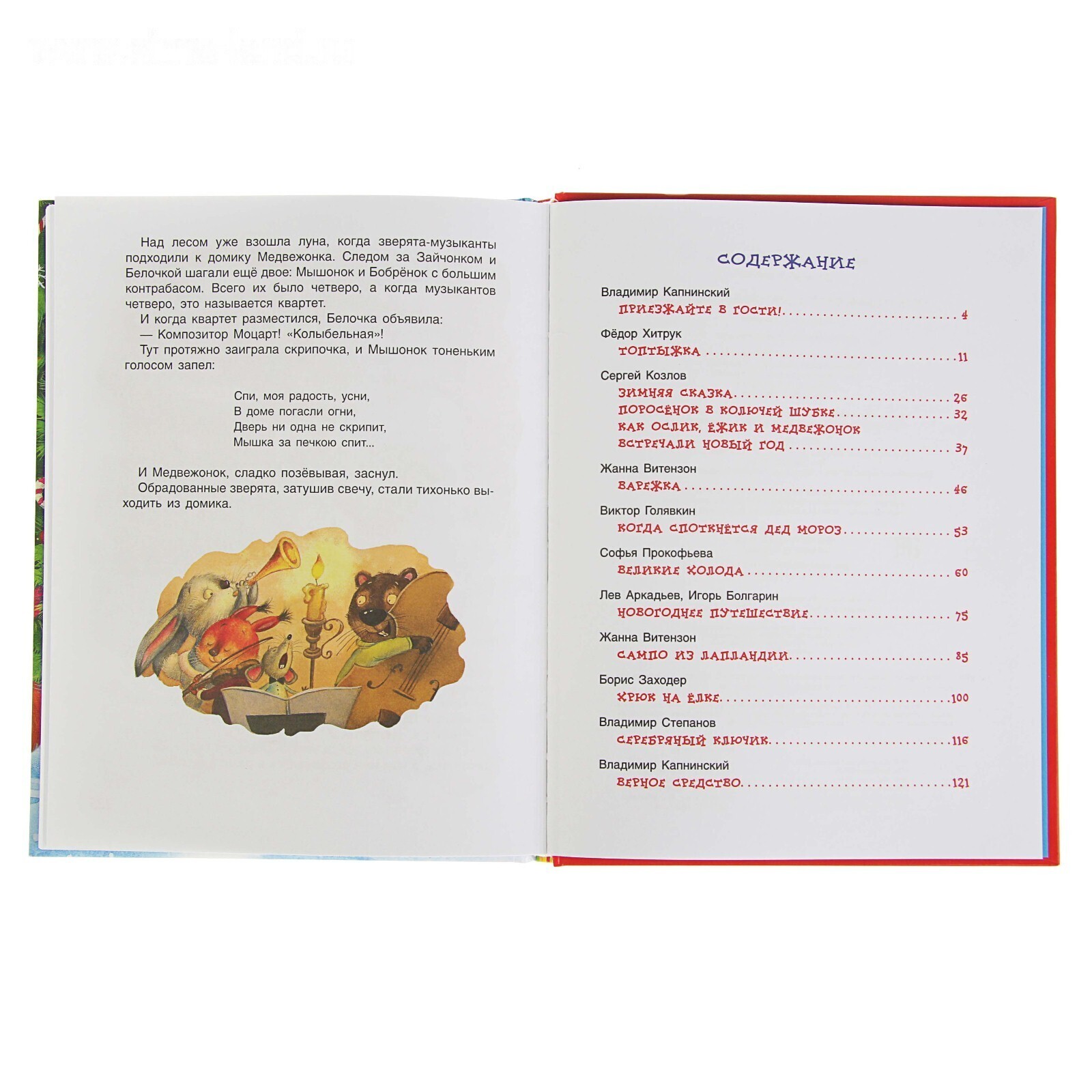 Новогодние сказки российских авторов, известных как замечательные сценаристы - Сергея Козлова, Федора Хитрука, Жанны Витензон, Софьи Прокофьевой, Бориса Заходера и других - создадут настоящее новогоднее настроение и детям, и взрослым. Многие из этих сказок знакомы нам по любимым мультфильмам - «Варежка», «Сампо из Лапландии», «Как Ёжик и Медвежонок встречали Новый год», «Топтыжка», «Новогоднее путешествие» и др. Иллюстрации Любови Ереминой.