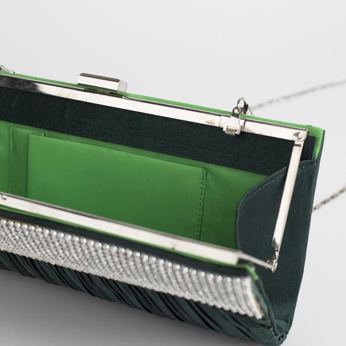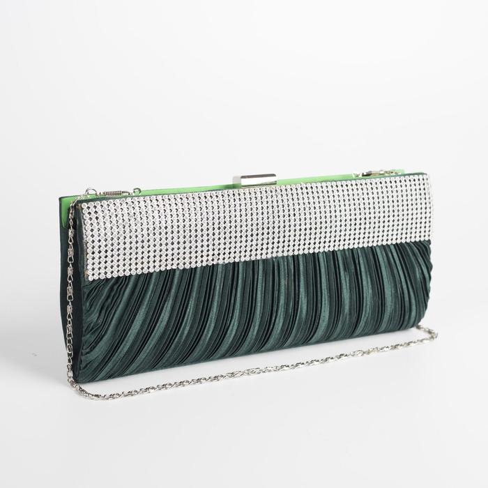 Клатч женский, отдел на фермуаре, длинная цепь, цвет зелёный 2531123