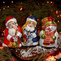 Набор фигур из тёмного шоколада "Новогодний микс (Дед Мороз, Снегурочка, Снеговик), 50 г 2840533