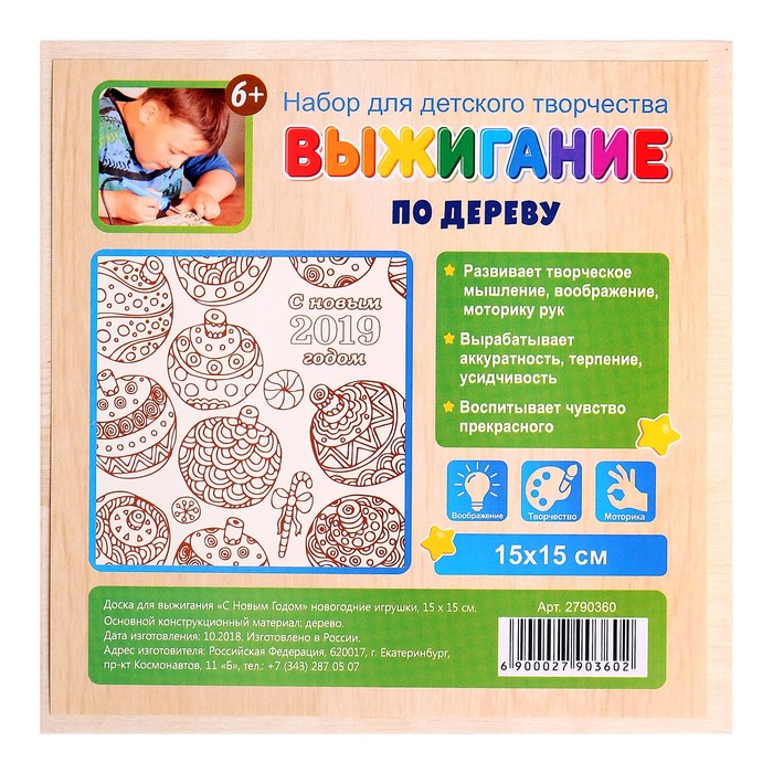 Доска для выжигания "С Новым Годом" новогодние игрушки 2790360