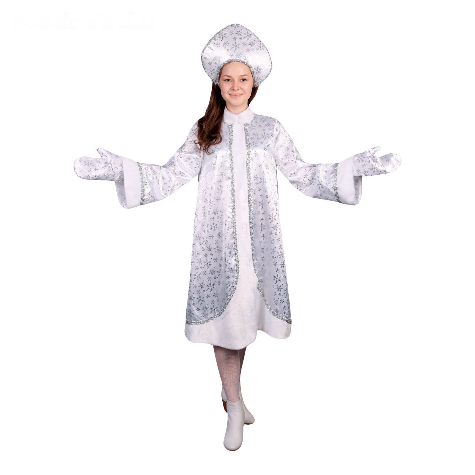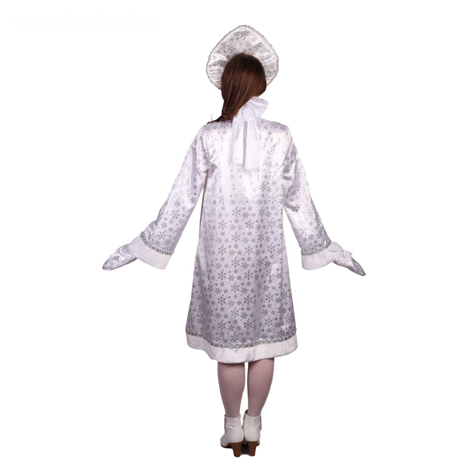 Карнавальный костюм "Снегурочка", атлас, шуба расклешённая со снежинками, кокошник, варежки, р-р 42 2638542