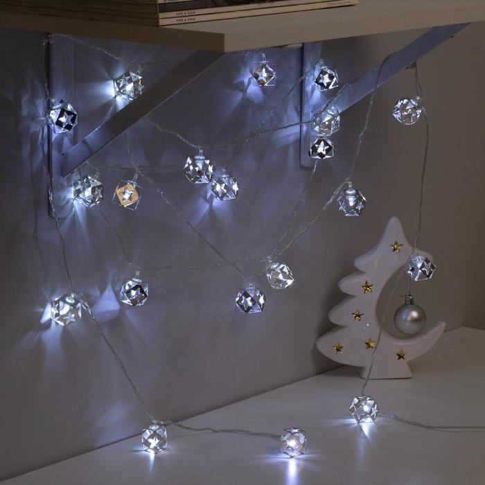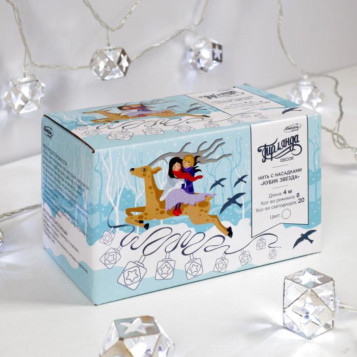 Гирлянда "Нить" 4 м с насадками "Кубик звезда", IP20, прозрачная нить, 20 LED, свечение белое, 8 режимов, 220 В 2388659