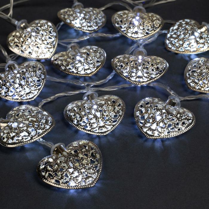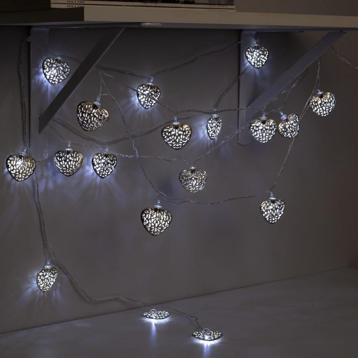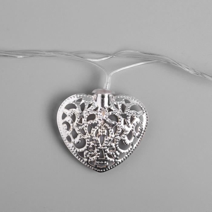 Гирлянда "Нить" 4 м с насадками "Сердце", IP20, прозрачная нить, 20 LED, свечение белое, 8 режимов, 220 В 2388648