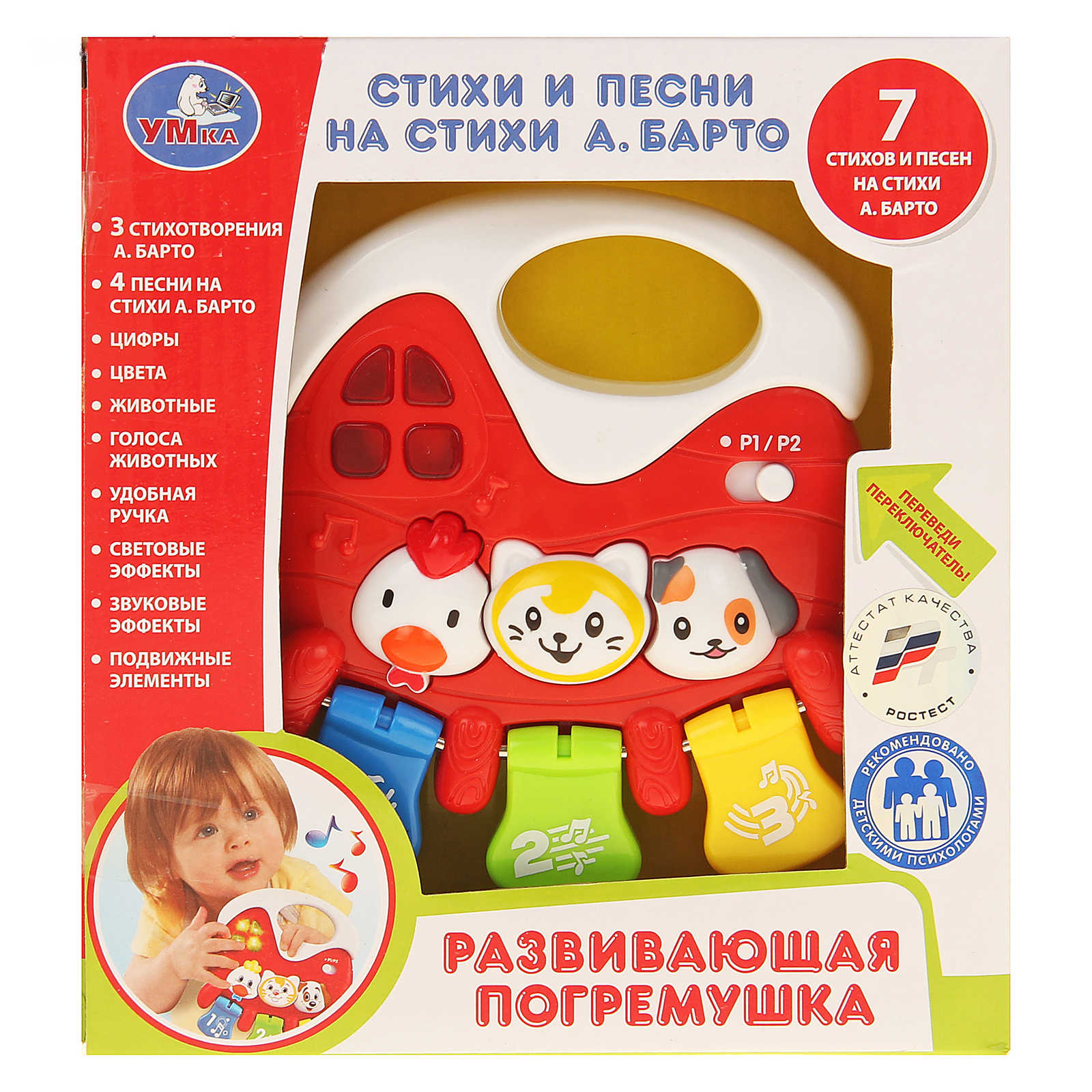 Развивающая погремушка, песни и стихи А. Барто, световые эффекты 2821018
