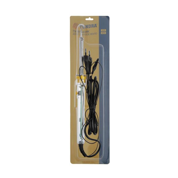 Паяльник питается от сети в 220 В. и имеет мощность в 40 Вт, благодаря чему происходит быстрый нагрев жала. Специальный изоляционный слой предотвращает случайный контакт с токоведущей частью во время работы с инструментом.