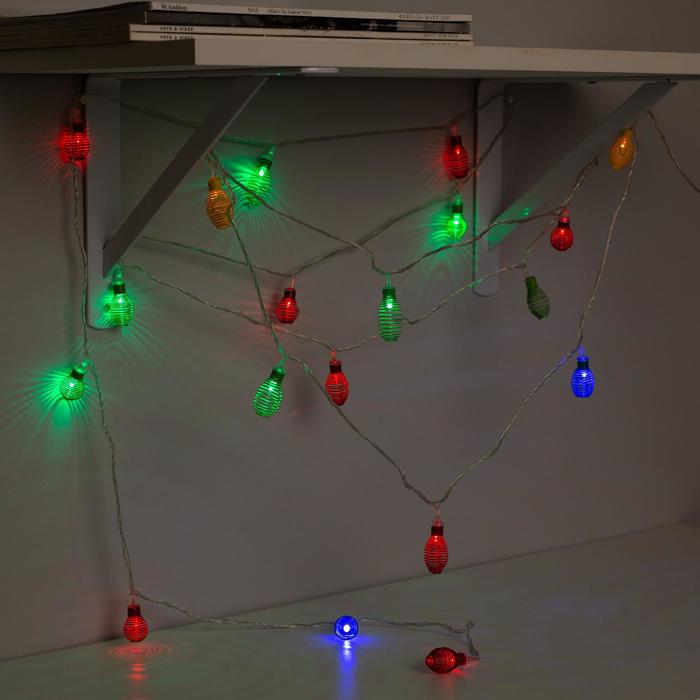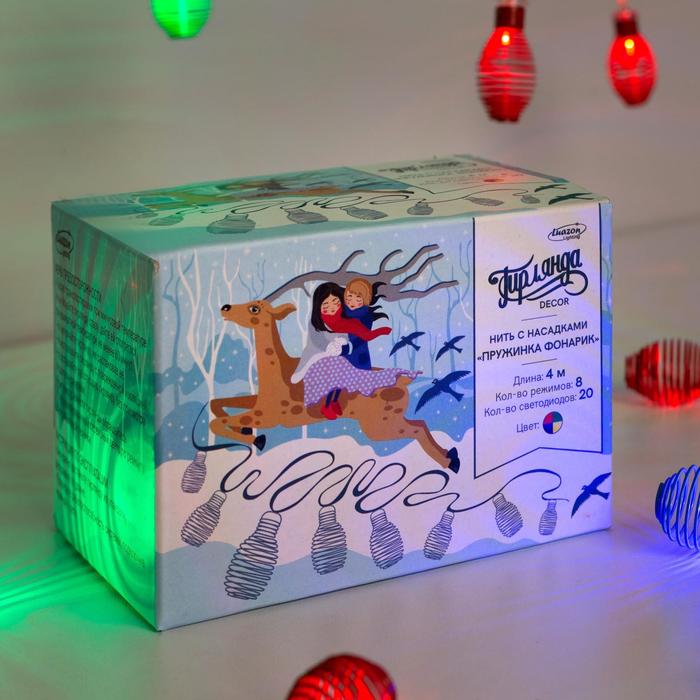 Гирлянда "Нить" 4 м с насадками "Пружинка фонарик", IP20, прозрачная нить, 20 LED, свечение мульти, 8 режимов, 220 В 2388707