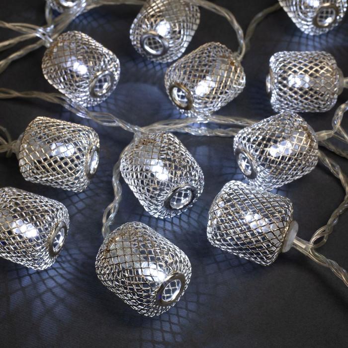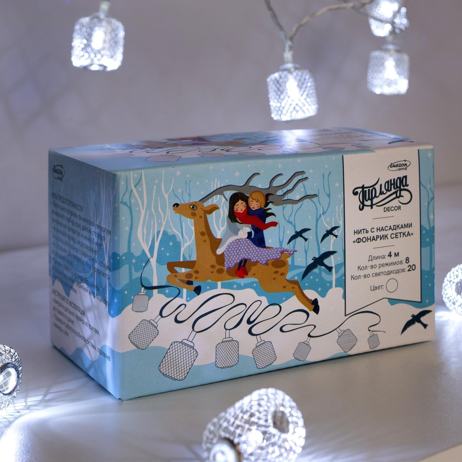 Гирлянда "Нить" 4 м с насадками "Фонарик сетка", IP20, прозрачная нить, 20 LED, свечение белое, 8 режимов, 220 В 2388680