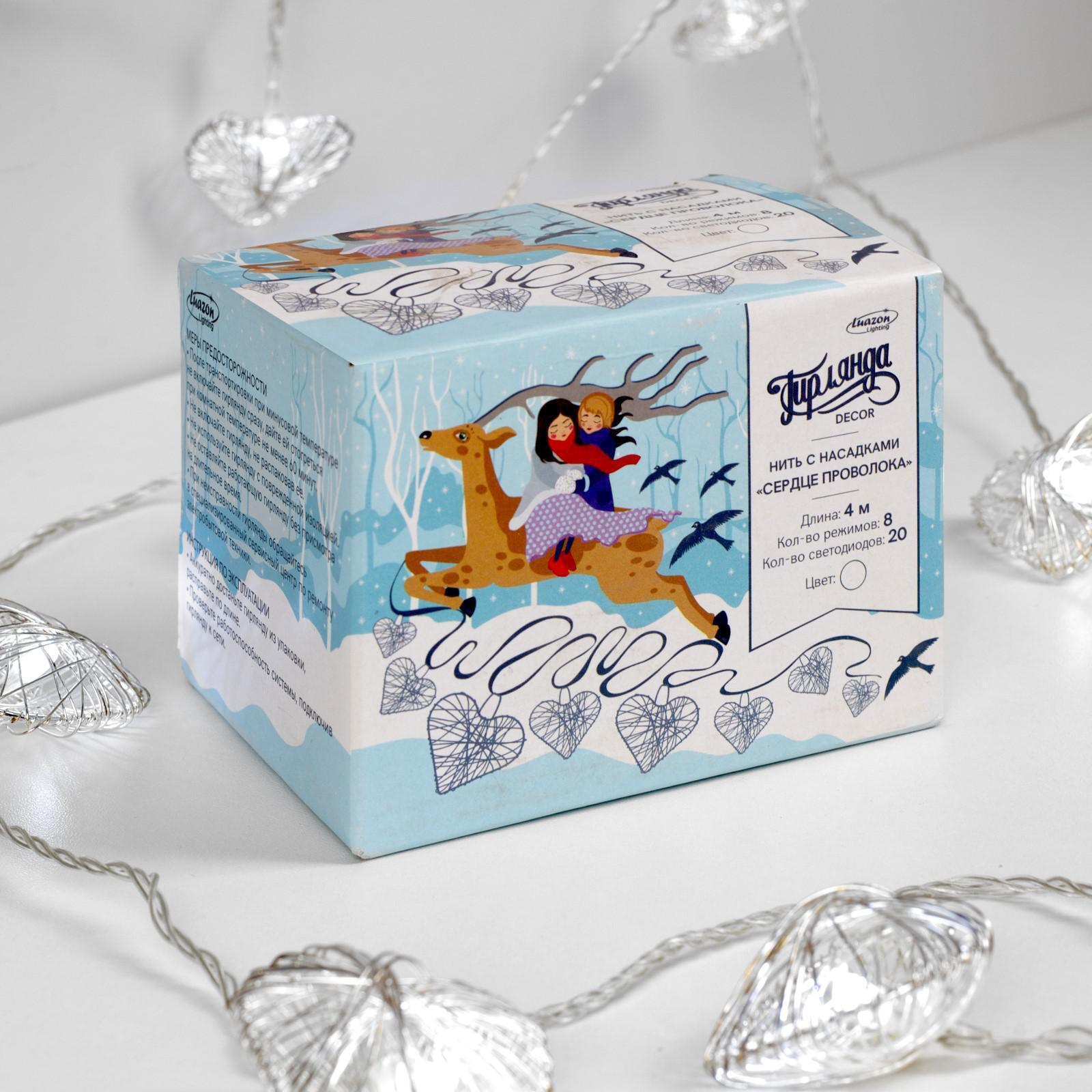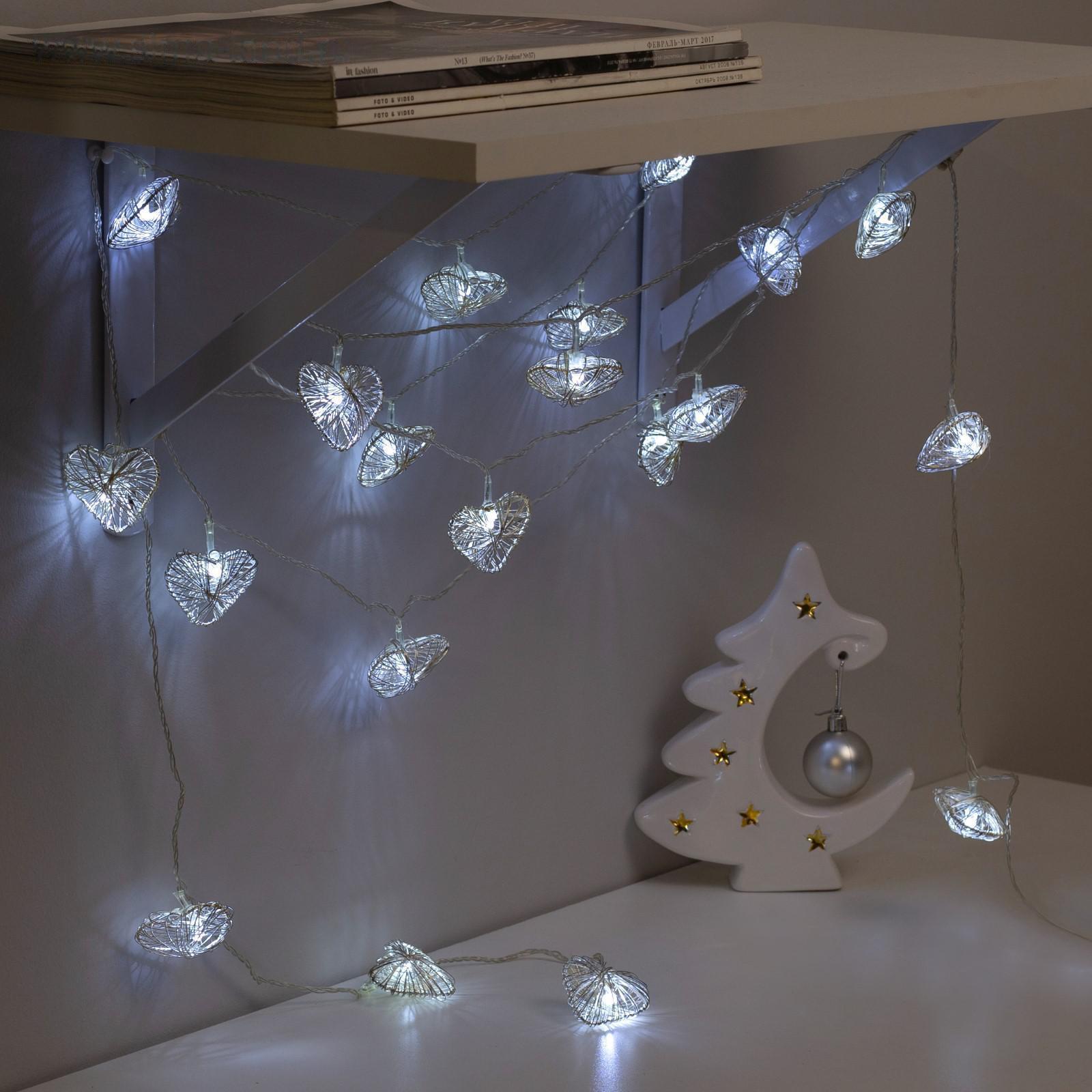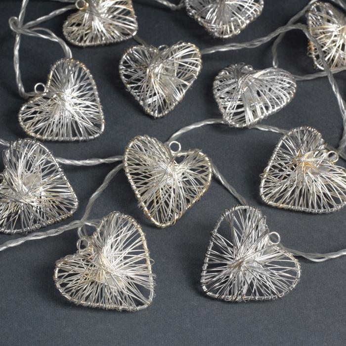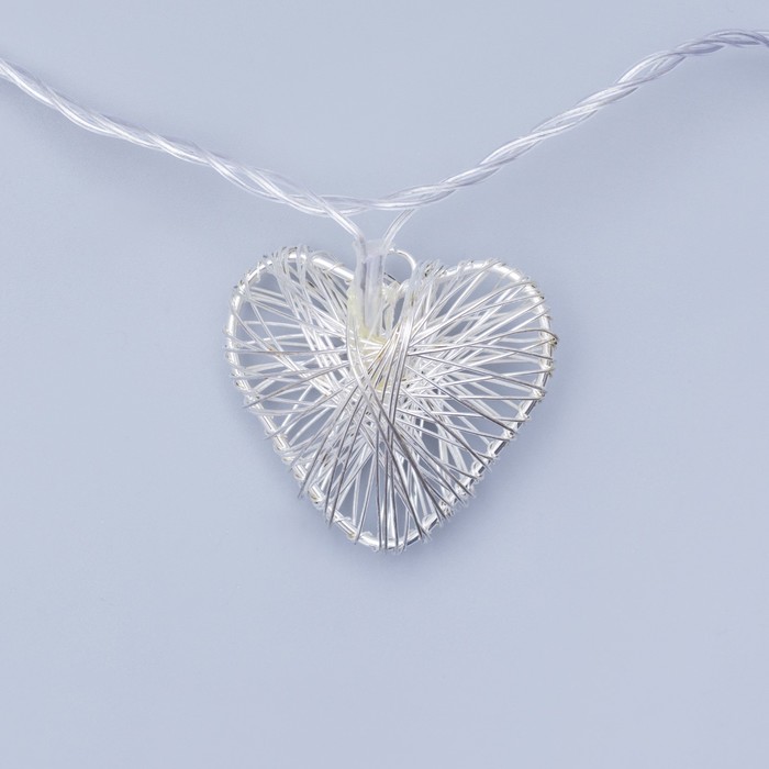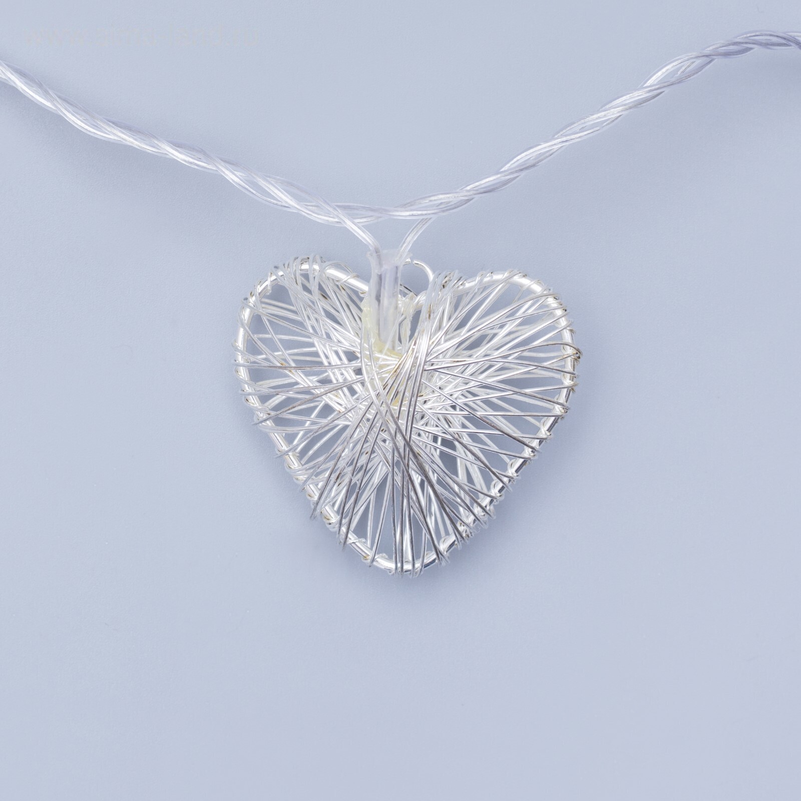 Гирлянда "Нить" 4 м с насадками "Сердце проволока", IP20, прозрачная нить, 20 LED, свечение белое, 8 режимов, 220 В 2388674