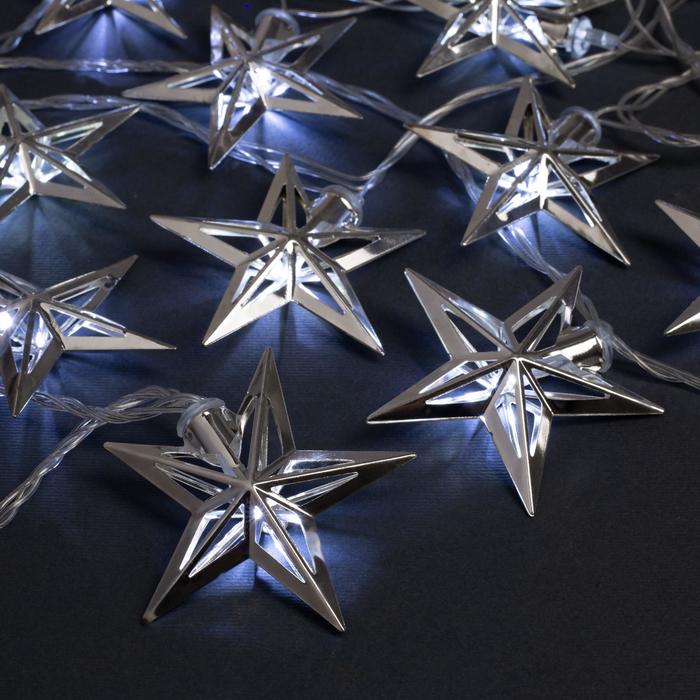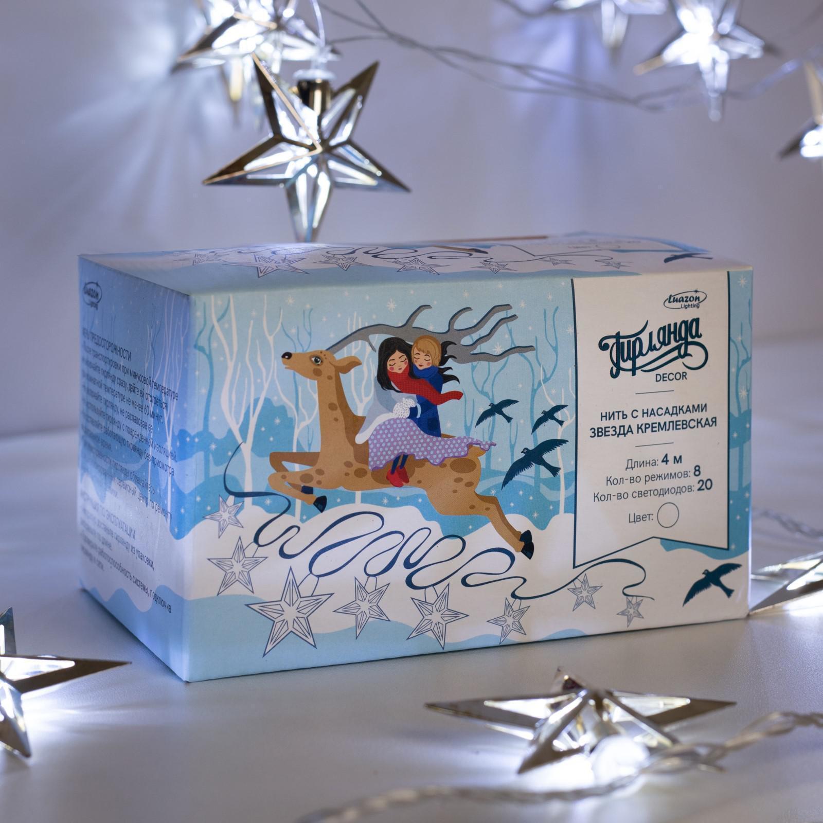 Гирлянда "Нить" 4 м с насадками "Кремлевская звезда", IP20, прозрачная нить, 20 LED, свечение белое, 8 режимов, 220 В 2388651