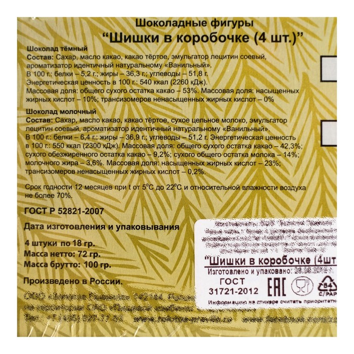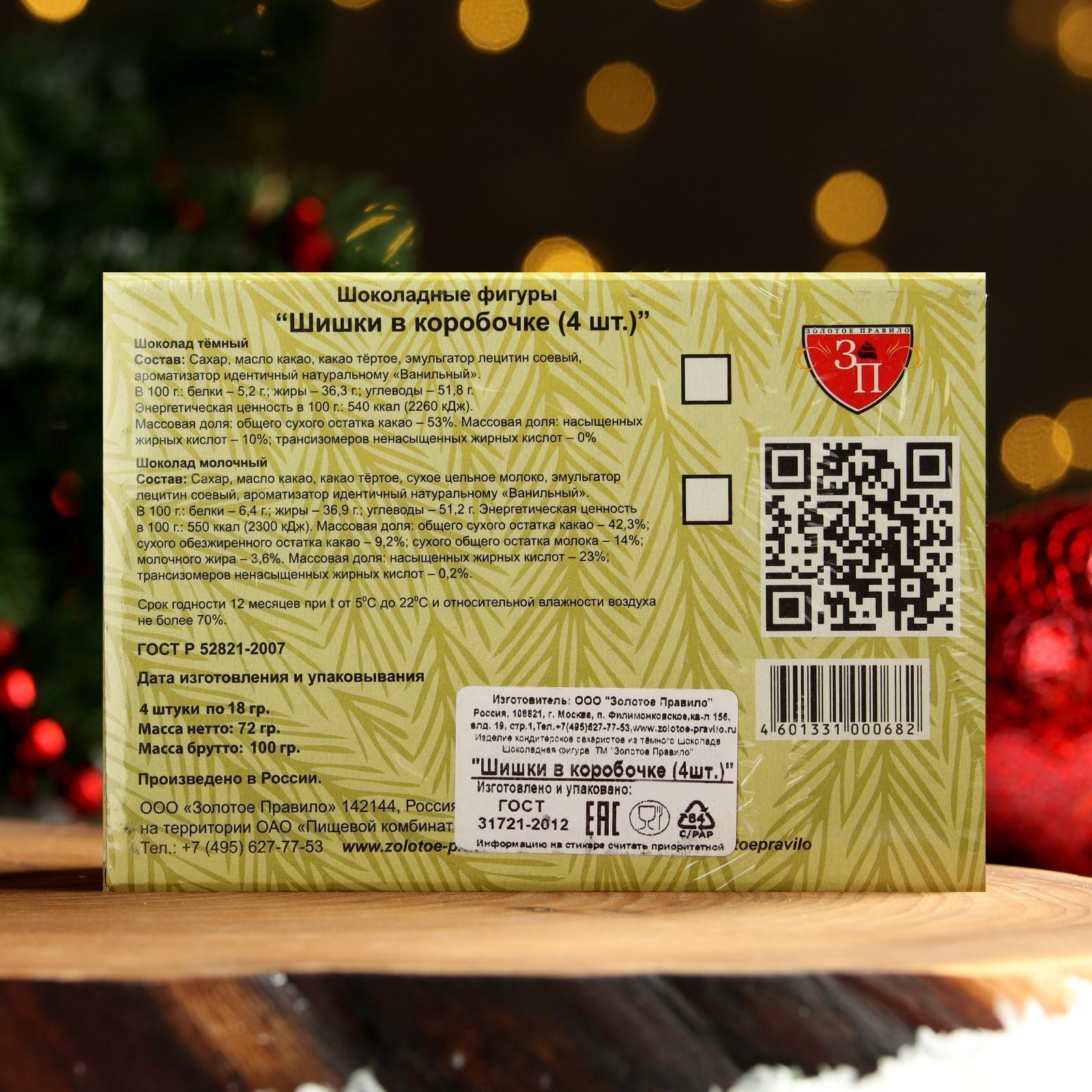 Подарочный набор фигур из тёмного шоколада "Шишки в коробочке", 72 г 2840541