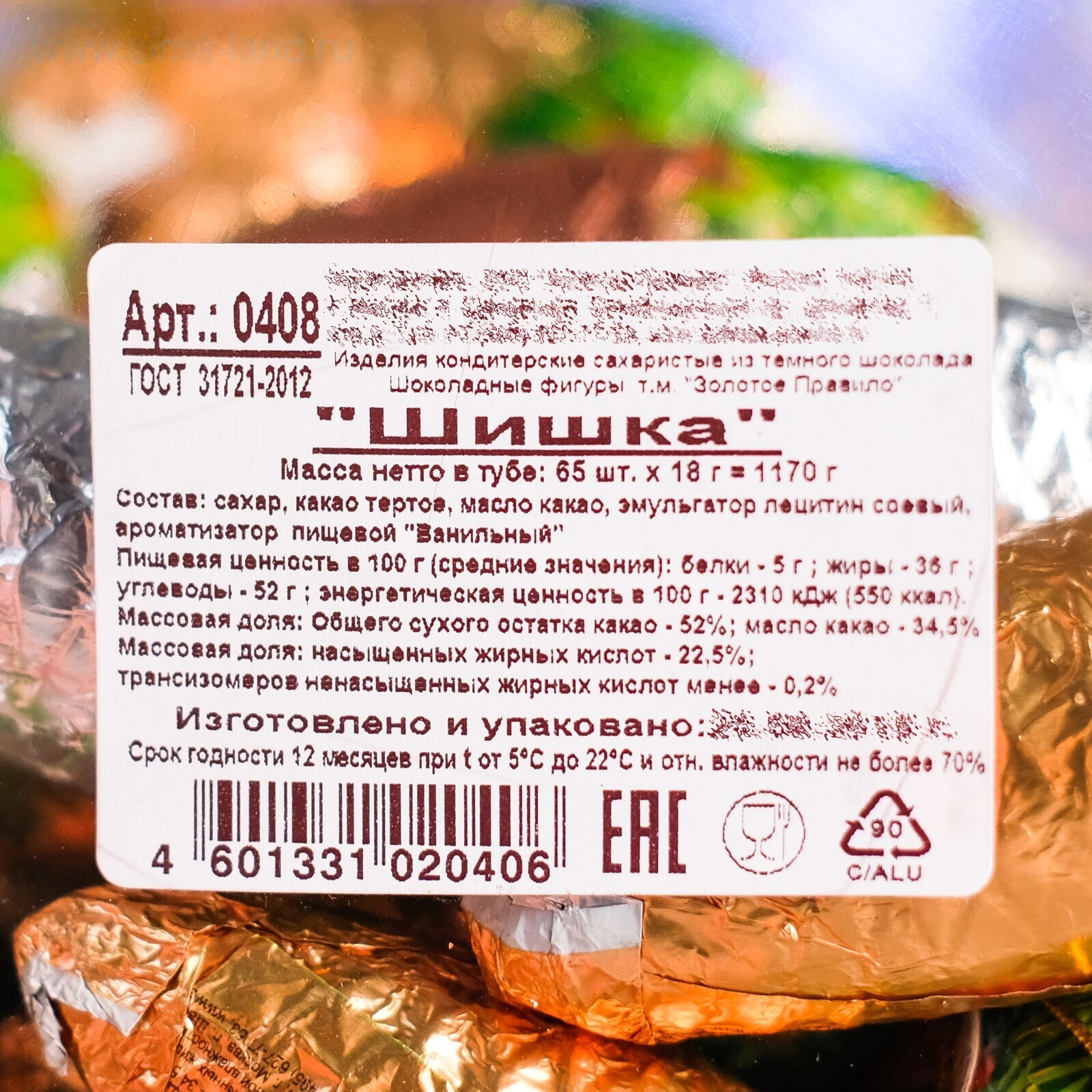 Фигура из тёмного шоколада "Шишка", 18 г (в тубусе) 2840497