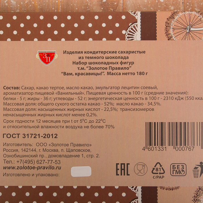 Подарочный набор фигур из тёмного шоколада "Вам, красавицы!", 180 г 2840560