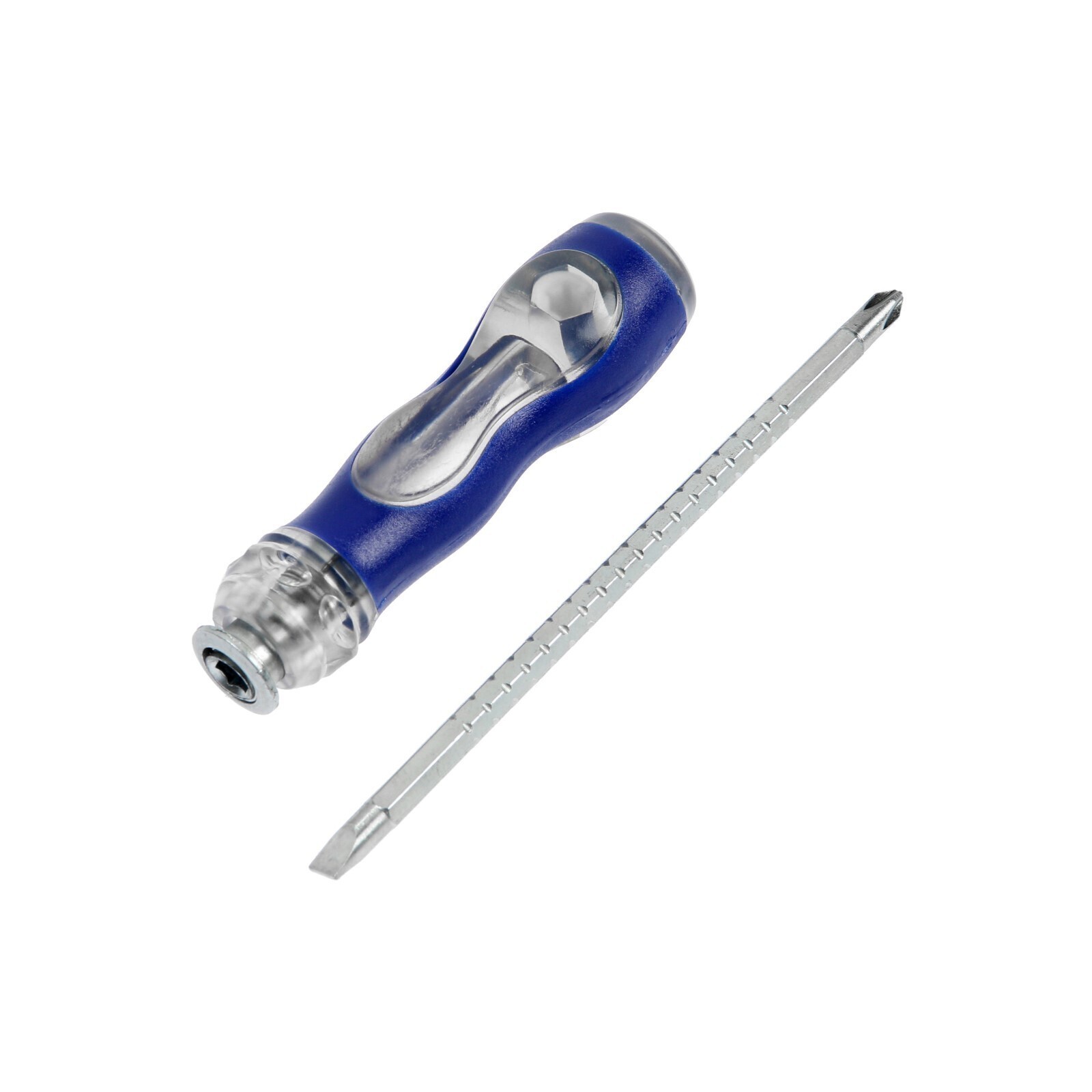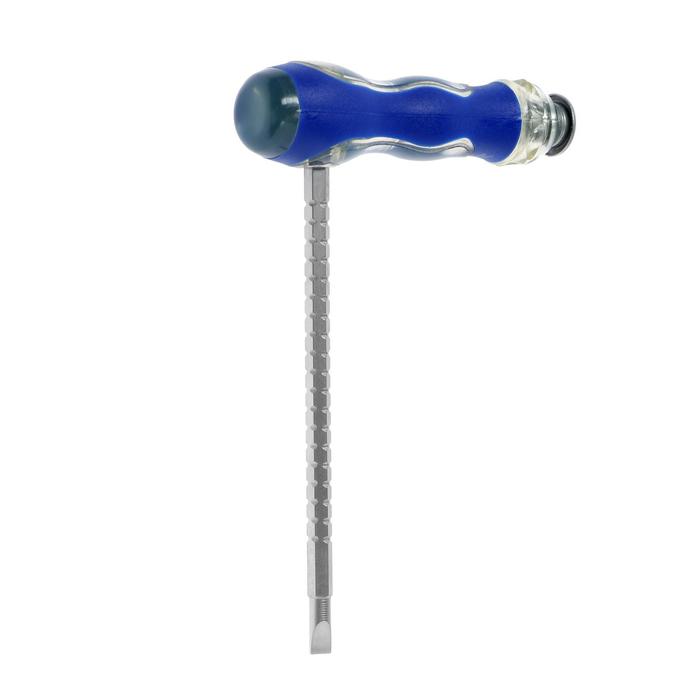 Комбинированная отвёртка совмещает в себе два профиля – крестовую и шлицевую. Благодаря дополнительному отверстию на рукоятке происходит усилительный момент, который увеличивает возможности работы с инструментом.