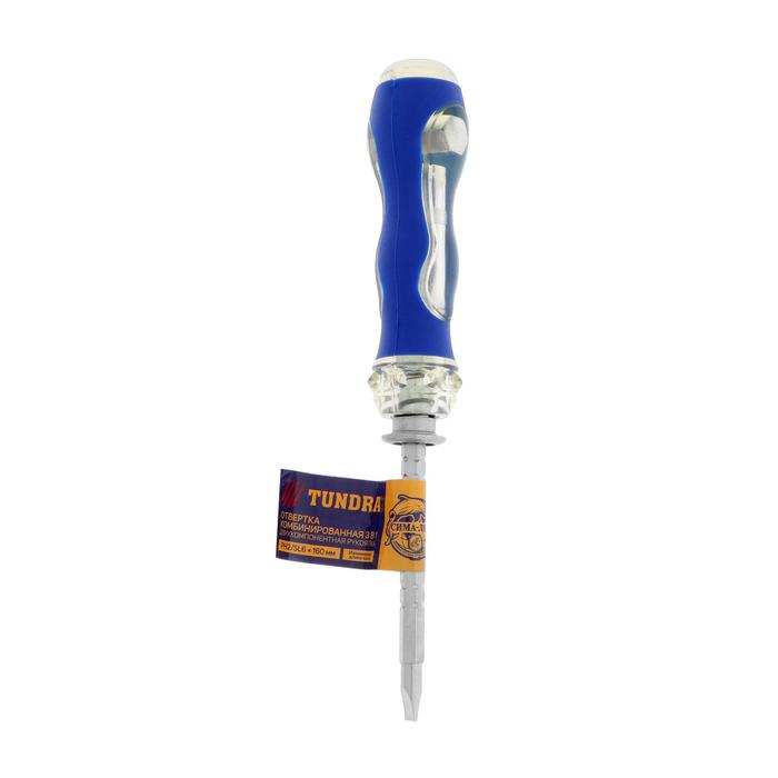 Отвертка комбинированная TUNDRA, 3 в 1, изменяемая длина жала, 2К рукоятка, PH2/SL6 х 160 мм 2276021