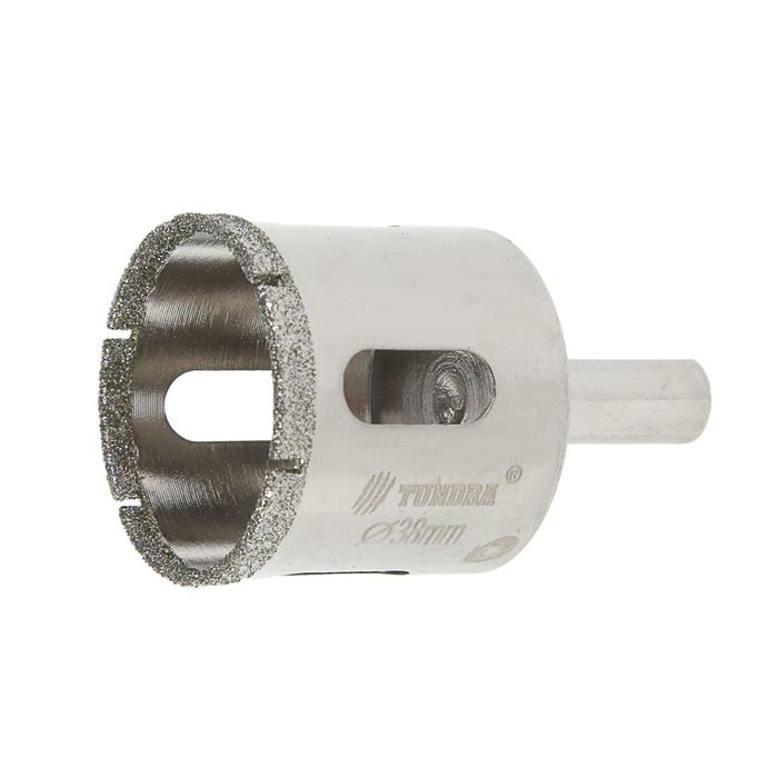 Сверло алмазное по стеклу и керамике TUNDRA, трехгранный хвостовик, 38 х 55 мм 1935844