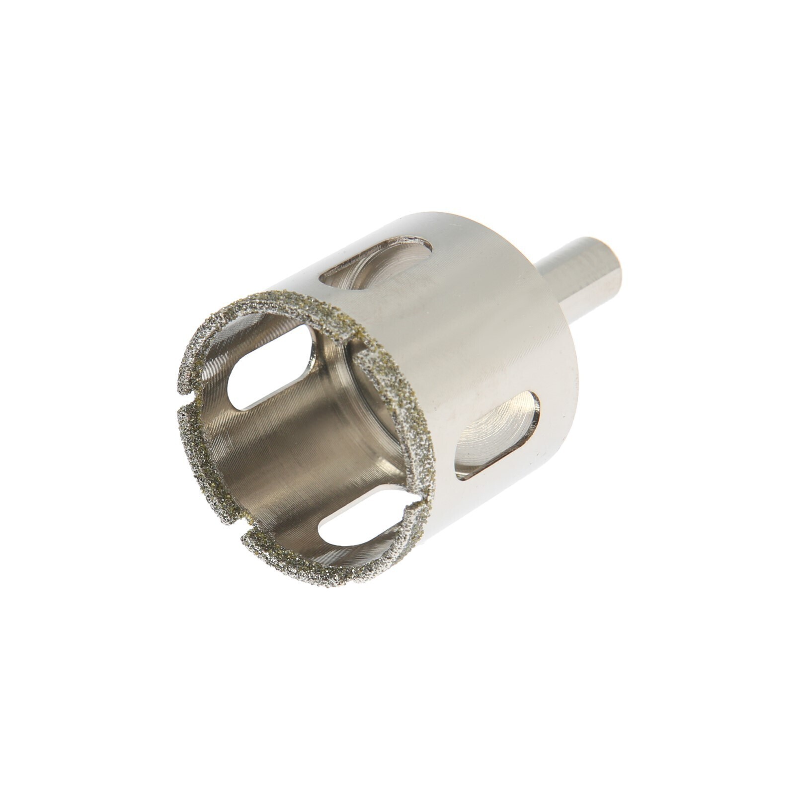 Инструмент имеет головку с алмазным напылением, благодаря которому выходят точные и аккуратные отверстия.