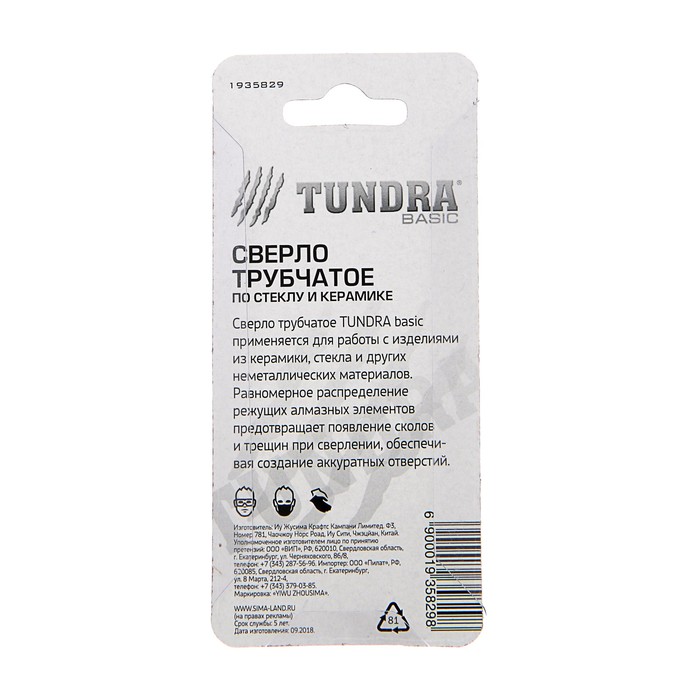 Сверло алмазное по стеклу и керамике с трехгранным хвостовиком ТУНДРА предназначено для совместного использования с дрелью.